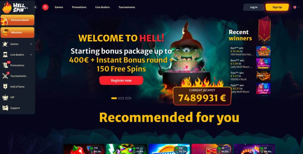 Vitajte v ríši, kde sa zábava snúbi s rizikom a ohnivá tematika nie je len na okrasu. HellSpin Casino je pomerne nový hráč na poli online hazardu, ktorý svoju bránu otvoril v roku 2022 . Za jeho vznikom stojí spoločnosť TechOptions Group B.V., operátor s bohatým portfóliom podobných projektov, čo je zárukou, že v pozadí nestojí žiadna neznáma firma. Ako sa na poriadne peklo patrí, dizajn je temný, miestami až dramatický, s výraznými ohnivými akcentami, ktoré vytvárajú nezameniteľnú atmosféru.